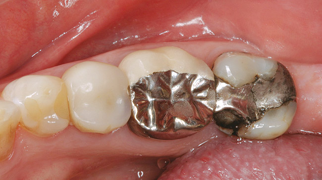 A middle-aged woman presented with the chief concern of seven existing full-coverage restorations that required replacement because of recurrent decay and compromised margins (Figure 2');" rel="imagepop" rem="#ip:figure1 and Figure 2">Figure 1 and Figure 2). She underwent an oral examination and medical history review, after which it was concluded that she had no medical or dental contraindications to treatment. The teeth to be replaced were the upper left bicuspids and first and second molars, and the lower second bicuspid and first and second molars. It was decided that these new restorations would be fabricated in-office with the author's chairside CAD/CAM restorative system (CEREC® 3D, Sirona Dental Systems Inc, Charlotte, NC).