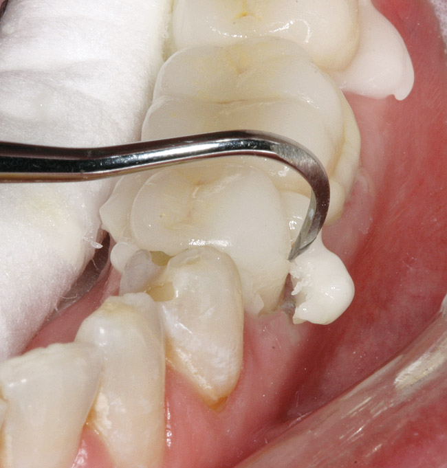 All decay was removed from the teeth and any necessary buildups were placed to eliminate undercuts or gain proper retention form in the resulting preparations. Before the optical scanning of the preparations for restoration design, the soft tissue was retracted in the subgingival areas with a putty-type retraction system (Figure 5');" rel="imagepop" rem="#ip:figure4 and Figure 5">Figure 4 and Figure 5). A putty retraction system was specifically chosen over traditional retraction cord or other hemostatic agent because of these two methods' potential for tissue (epithelial attachment) damage and recession.15-17