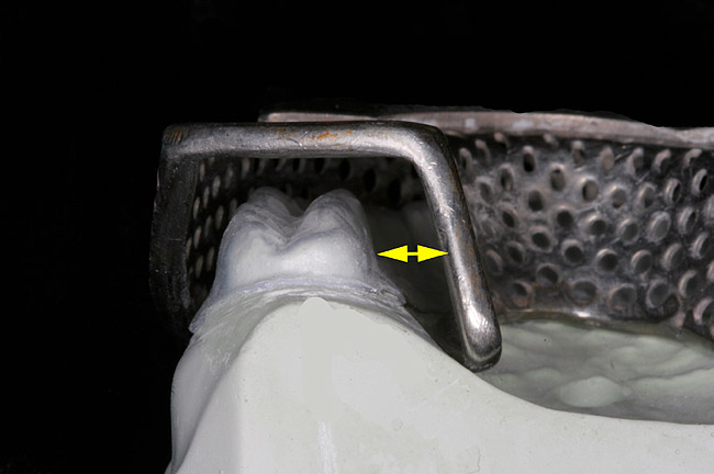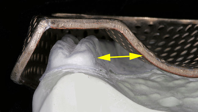 Cox, et al, found that dies fabricated with metal trays and putty-loaded plastic trays were comparable in dimension to those produced with the conventional complete-arch method.45 They also found that plastic trays loaded with heavy-bodied material may not be as clinically reliable due to the flexibility of the tray. Depending on the anatomy of the surrounding tissue, flexure of the tray could occur during maximum intercuspal closure.