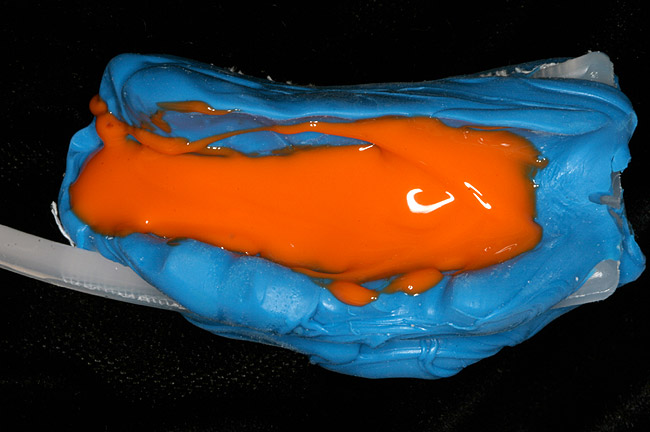 The dual-phase technique can be subdivided into 1-step or 2-step methods. The 1-step putty/heavy-bodied and light-bodied technique requires less time because both materials are placed at the same time.26 Even though chair-time is reduced, there are two major concerns with this method. One is that with only one step there is no compensation for errors by using a second step. The other concern is the lack of control of the bulk of the light-bodied material.31 Another problem with this technique is that the heavy-bodied or putty material can push the light-bodied material away from marginal areas of the prepared tooth.26