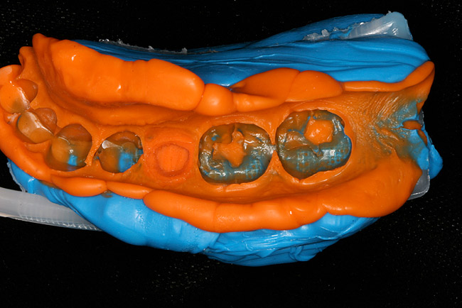 A variation of the 2-step, dual-arch impression technique would be to eliminate the possible interference in closure caused by the tray and to remove any possible distoration due to tray recoil or “memory.”