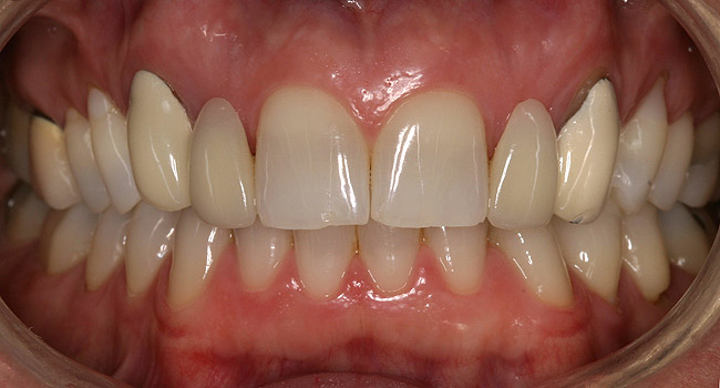 When a patient presents with a missing anterior tooth and heavily treated adjacent teeth, although conceptually an FPD option may seem the most appropriate choice, it can be argued that it would not be the most favorable option. If long-term treatment outcome is a strong motivator for the patient, then a treatment plan that includes individual restored units would be the more appropriate choice. Consequently, the patient would most likely have improved benefit with a single implant-supported restoration and treating the adjacent teeth as separate, single units (Figure 7).