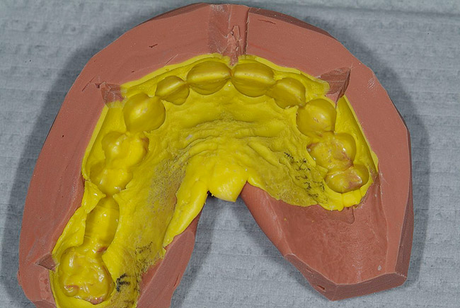 The foundation of the rehabilitation is accurate casts. This is not limited to impressions of prepared teeth; just as important are the preoperative casts. They will be used in the diagnostic waxing and provisional matrix fabrication. Replicating occlusal detail on subjects with aggressively worn teeth and damaged restorations can be a challenge. Casts with occlusal distortions, missing information, or that are poorly poured will lead to mounting and waxing errors. Provisionals will be produced that cannot mimic the features of the laboratory product. Rudd13 outlined the keys for successful alginate (Integra, Kerr Corporation, www.kerrdental.com impressioning and cast fabrication. A review of these guidelines is recommended. Alginate substitutes (such as AlgiNot and AlgiNot FS, Kerr Corporation; Counter-Fit™, Clinician’s Choice Dental Products, Inc, www.clinicianschoice.com; Position™ Penta™ Quick, 3M ESPE, www.3mespe.com) are equally accurate when used correctly.